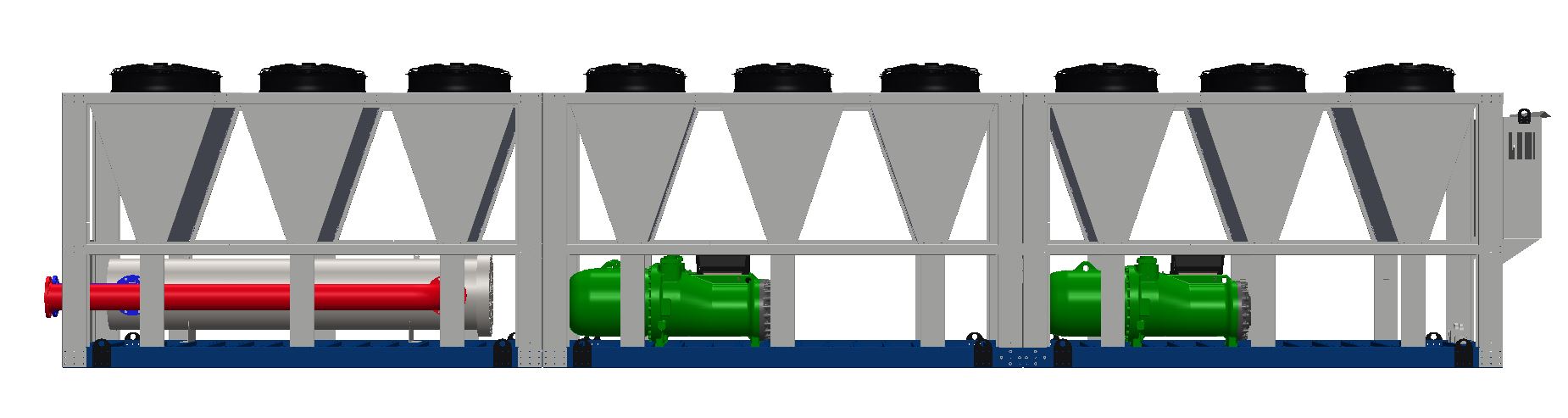 1. Air cooled chillers are devices that cool the condenser with air. By the fans on itself, it cools the refrigerant flowing through the condenser.