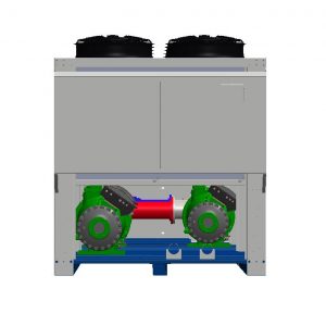 Compressor is protected by water pumps, fans, and thermic and circuit breaker plugs. Non-ozone-harming 407C refrigerant gas is used. Automatic stop and start of fans and compressors are controlled by digital thermostats or microprocessors.